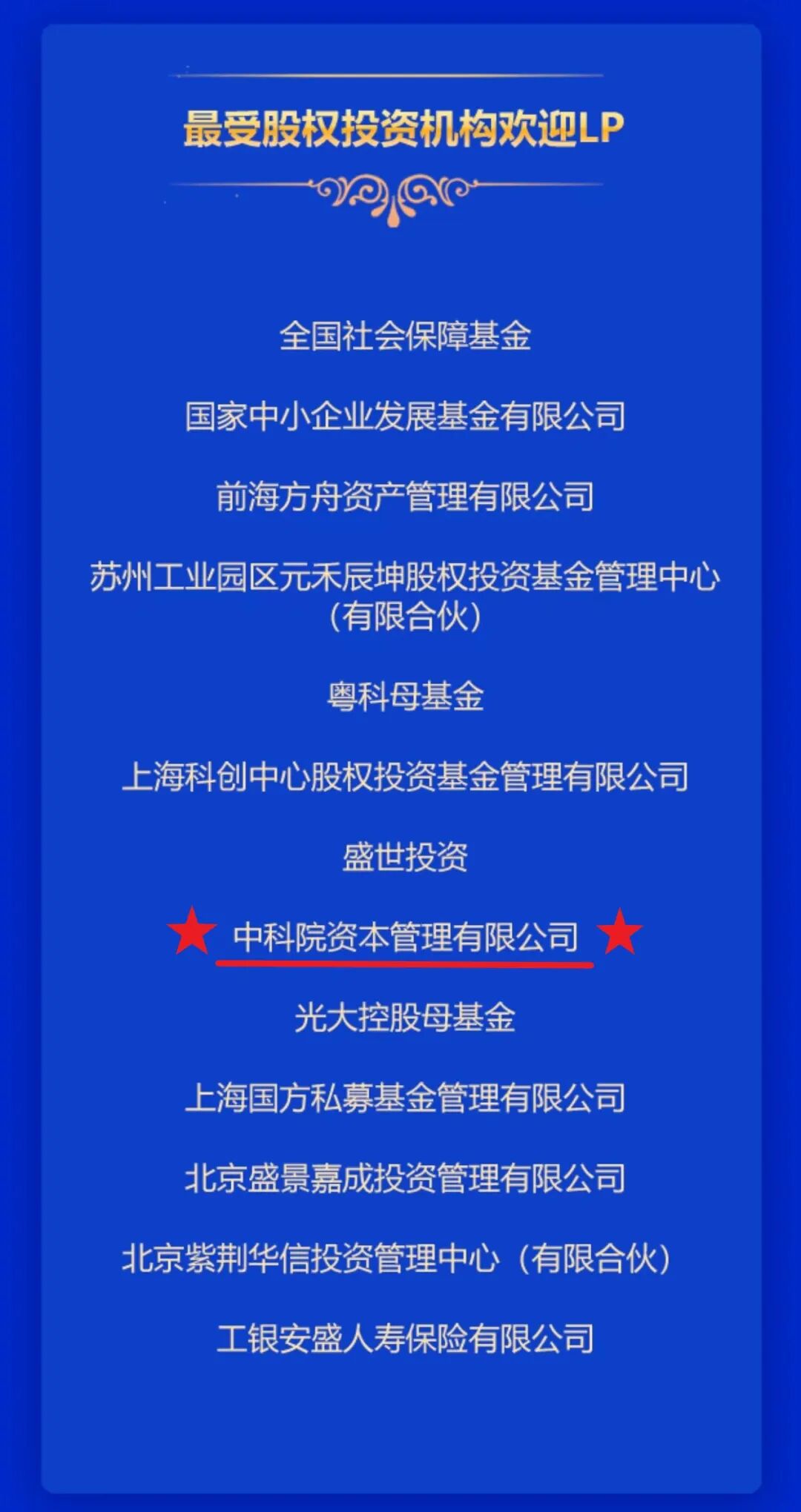 连续三年蝉联!中科院资本荣膺第七届股权投资金牛奖“最受股权投资机构欢迎LP”