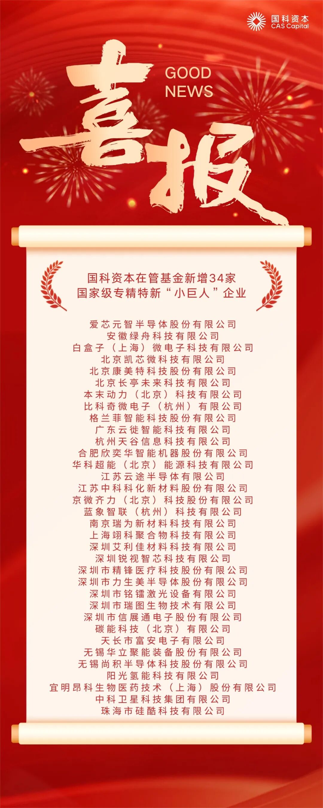 CASC Family | 国科资本在管基金旗下新增34家国家级专精特新“小巨人”企业