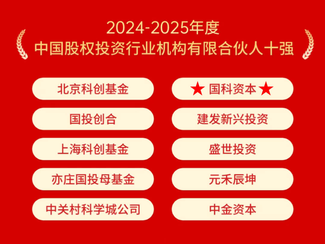 CASC News | 国科资本荣登“2024-2025年度中国PE/VC行业评选”两项榜单