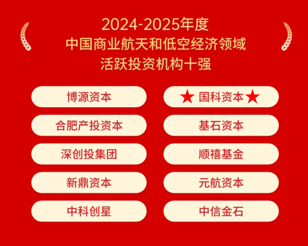 2025年12月6日,“2024-2025年度中国PE/VC行业评选”结果重磅发布,国科资本荣登“2024-2025年度中国股权投资行业机构有限合伙人十强”及“2024-2025年度中国商业航天和低空经济领域活跃投资机构十强”两项榜单。