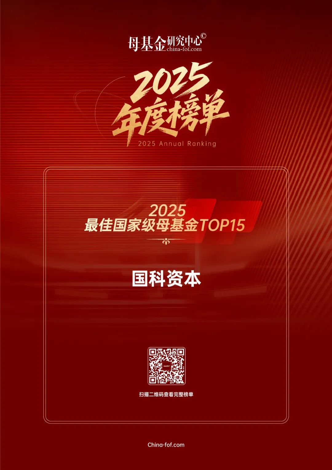 2025年12月29日,“母基金研究中心2025年度榜单”发布,国科资本荣登“2025最佳国家级母基金TOP15”及“2025最佳国资直投机构TOP30”两项榜单。