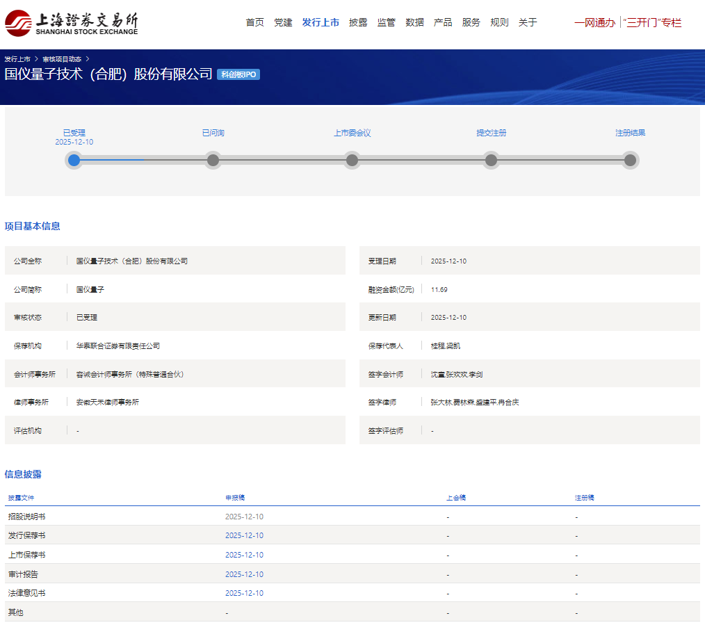 2025年12月10日,国科资本投资企业国仪量子技术(合肥)股份有限公司(简称:国仪量子)在上交所科创板IPO申请获受理。